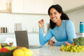 Zdjęcie "Happy black lady enjoying cooking, preparing healthy vegetable salad and mixing ingredients in bowl, standing in kitchen, copy space. Dieting and recipes concept" może być wykorzystywane do celów osobistych i komercyjnych zgodnie z warunkami zakupionej licencji Royalty-free. Obraz jest dostępny do pobrania w jakości wysokiej rozdzielczości do 5760x3840.