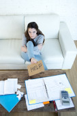 młoda kobieta obawia się w domu w stres rachunkowości rozpaczliwa w problemy finansowe