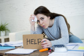 Zdjęcie "młoda kobieta obawia się w domu w stres rachunkowości rozpaczliwa w problemy finansowe" może być wykorzystywane do celów osobistych i komercyjnych zgodnie z warunkami zakupionej licencji Royalty-free. Obraz jest dostępny do pobrania w jakości wysokiej rozdzielczości do 5760x3840.