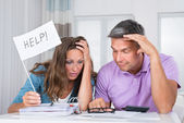 Młoda para martwi się w domu w złej sytuacji finansowej stres