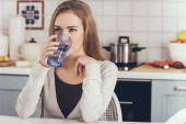 Zdjęcie "Piękny kaukaski kobieta siedzi w kuchni i picie." może być wykorzystywane do celów osobistych i komercyjnych zgodnie z warunkami zakupionej licencji Royalty-free. Obraz jest dostępny do pobrania w jakości wysokiej rozdzielczości do 5760x3840.