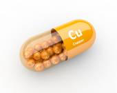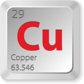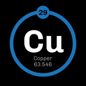 Copper, 3D rendering of symbols of the elements of the periodic table, atomic number, atomic weight, name and symbol. Education, science and technology. 3D illustration