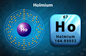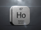 Holmium, 3D rendering of symbols of the elements of the periodic table, atomic number, atomic weight, name and symbol. Education, science and technology. 3D illustration