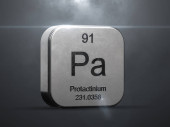 Protactinium, 3D rendering of symbols of the elements of the periodic table, atomic number, atomic weight, name and symbol. Education, science and technology. 3D illustration