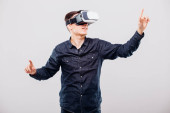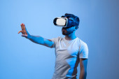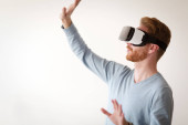 Zdjęcie "Młody człowiek korzystający z zestawu słuchawkowego wirtualnej rzeczywistości. Izolacja na pomarańczowym tle." może być wykorzystywane do celów osobistych i komercyjnych zgodnie z warunkami zakupionej licencji Royalty-free. Obraz jest dostępny do pobrania w jakości wysokiej rozdzielczości do 5760x3840.