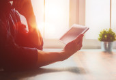 Zdjęcie "Zbliżenie na młoda kobieta siedzi z komputera typu tablet w loft Apartament" może być wykorzystywane do celów osobistych i komercyjnych zgodnie z warunkami zakupionej licencji Royalty-free. Obraz jest dostępny do pobrania w jakości wysokiej rozdzielczości do 5760x3840.