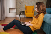 Młoda kobieta z dslr aparat fotograficzny komputera przenośnego w lo