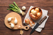 Zdjęcie "Composition with different onion on wooden background" może być wykorzystywane do celów osobistych i komercyjnych zgodnie z warunkami zakupionej licencji Royalty-free. Obraz jest dostępny do pobrania w jakości wysokiej rozdzielczości do 5760x3840.