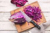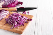 Zdjęcie "Wooden board with cut red onion and knife on table, closeup" może być wykorzystywane do celów osobistych i komercyjnych zgodnie z warunkami zakupionej licencji Royalty-free. Obraz jest dostępny do pobrania w jakości wysokiej rozdzielczości do 5760x3840.
