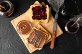 Zdjęcie "Composition with wooden board of tasty toasts and jam on dark background" może być wykorzystywane do celów osobistych i komercyjnych zgodnie z warunkami zakupionej licencji Royalty-free. Obraz jest dostępny do pobrania w jakości wysokiej rozdzielczości do 5760x3840.