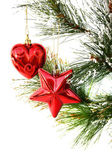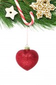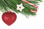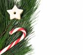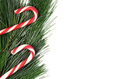 Jodła choinki udekorowane dowcip trzciny, snowlake i czerwonego blasku
