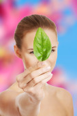 piękne kaukaski kobieta jedzenie świeże zielone luttce z miski