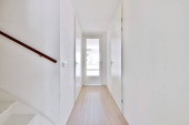 Korytarz współczesnego mieszkania z drzwiami prowadzącymi na taras