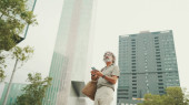 Zdjęcie "Przyjazny mężczyzna w średnim wieku z siwymi włosami i brodą, noszący zwykłe ubrania, korzystający z telefonu komórkowego. Dojrzały dżentelmen w okularach rozmawiający przez telefon komórkowy na zewnątrz" może być wykorzystywane do celów osobistych i komercyjnych zgodnie z warunkami zakupionej licencji Royalty-free. Obraz jest dostępny do pobrania w jakości wysokiej rozdzielczości do 5760x3840.