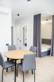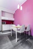 Nowoczesny apartament typu studio z fioletowe detale