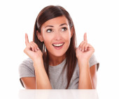Śliczny hiszpanin kobieta w niebieska koszula krzyczeć