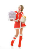 zdjęcie wesołego pomocnika Mikołaja dziewczyna z pudełka prezentów