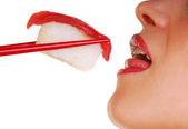 młoda kobieta, decydując się na jeść jabłko lub donuts