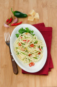 Zdjęcie "Spaghetti z serem chili czosnkiem i parmezanem" może być wykorzystywane do celów osobistych i komercyjnych zgodnie z warunkami zakupionej licencji Royalty-free. Obraz jest dostępny do pobrania w jakości wysokiej rozdzielczości do 5760x3840.