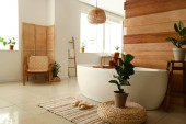 Zdjęcie "Interior of cozy living room with rattan poufs, armchair and sofa" może być wykorzystywane do celów osobistych i komercyjnych zgodnie z warunkami zakupionej licencji Royalty-free. Obraz jest dostępny do pobrania w jakości wysokiej rozdzielczości do 5760x3840.