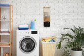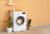 Zdjęcie "White washing machine near light wall in laundry room, closeup" może być wykorzystywane do celów osobistych i komercyjnych zgodnie z warunkami zakupionej licencji Royalty-free. Obraz jest dostępny do pobrania w jakości wysokiej rozdzielczości do 5760x3840.