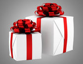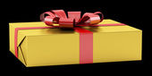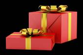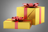 dwa pudełka żółty z czerwonymi wstążkami na białym tle na czarny backgro