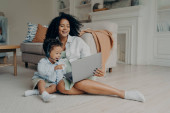 Zdjęcie "Radosna afro amerykańska matka z jasnym uśmiechem i kręcone włosy łaskotanie jej cute little syn maluch podczas spędzania szczęśliwego czasu ze sobą w sypialni, kochający mama i dziecko dobrze się bawiąc, grając w pomieszczeniach" może być wykorzystywane do celów osobistych i komercyjnych zgodnie z warunkami zakupionej licencji Royalty-free. Obraz jest dostępny do pobrania w jakości wysokiej rozdzielczości do 5760x3840.