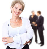 atrakcyjna kobieta pisze diagram.isolated na biały deseń