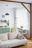 Zdjęcie "Olive Provencal Kitchen with Christmas Decor. Kitchen Interior with Red Christmas Toys. Copy Space" może być wykorzystywane do celów osobistych i komercyjnych zgodnie z warunkami zakupionej licencji Royalty-free. Obraz jest dostępny do pobrania w jakości wysokiej rozdzielczości do 5760x3840.