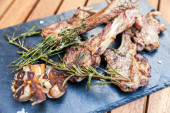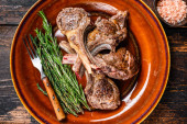 Zdjęcie "Pyszne grillowane żeberka serwowane na czarnym stole, widok z góry" może być wykorzystywane do celów osobistych i komercyjnych zgodnie z warunkami zakupionej licencji Royalty-free. Obraz jest dostępny do pobrania w jakości wysokiej rozdzielczości do 5760x3840.