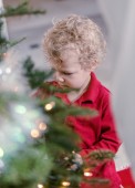 Cute dziewczynka w czerwonej sukience skandynawskie