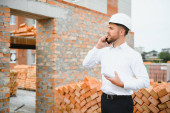 profession, construction and building - male worker or builder in helmet