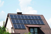 Zdjęcie "Dach domu z modułami fotowoltaicznymi. Historyczny dom rustykalny z nowoczesnymi panelami słonecznymi na dachu i ścianie" może być wykorzystywane do celów osobistych i komercyjnych zgodnie z warunkami zakupionej licencji Royalty-free. Obraz jest dostępny do pobrania w jakości wysokiej rozdzielczości do 5760x3840.
