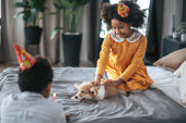 Zdjęcie "Asian girl playing with her kitten while sitting on bed at home" może być wykorzystywane do celów osobistych i komercyjnych zgodnie z warunkami zakupionej licencji Royalty-free. Obraz jest dostępny do pobrania w jakości wysokiej rozdzielczości do 5760x3840.