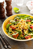 Asian cole slaw with creamy dressing, topped with salted roasted peanuts and green onion