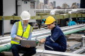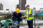 Industrial engineer work on site. engineer visit and inspection site engineer at industrial site. Inspector engineer check and working on site