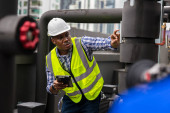 Zdjęcie "Industrial engineer work on site. engineer visit and inspection site engineer at industrial site. Inspector engineer check and working on site" może być wykorzystywane do celów osobistych i komercyjnych zgodnie z warunkami zakupionej licencji Royalty-free. Obraz jest dostępny do pobrania w jakości wysokiej rozdzielczości do 5760x3840.
