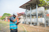 Industrial engineer work on site. engineer visit and inspection site engineer at industrial site. Inspector engineer check and working on site