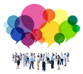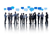 biznesmeni z bańkami mowy