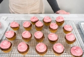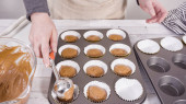 Zdjęcie "Cupcake patelnia wyłożona filiżanek babeczek foliowych do pieczenia czekoladowych babeczek malinowych." może być wykorzystywane do celów osobistych i komercyjnych zgodnie z warunkami zakupionej licencji Royalty-free. Obraz jest dostępny do pobrania w jakości wysokiej rozdzielczości do 5760x3840.