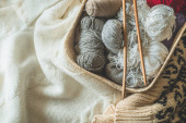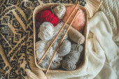 Zdjęcie "Balls of wool yarn, knitted little hat and wooden knitting needles on wooden background. Hobby craft. Concept of knitting, needlework." może być wykorzystywane do celów osobistych i komercyjnych zgodnie z warunkami zakupionej licencji Royalty-free. Obraz jest dostępny do pobrania w jakości wysokiej rozdzielczości do 5760x3840.