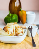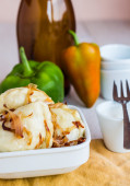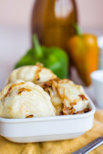 pierogi ze smażoną cebulą i śmietaną, kuchnia Ukraińska