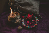 Poparzenia świec na ołtarzu, magia wśród świec, czysta negatywna energia, koncepcja wicca