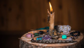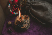Poparzenia świec na ołtarzu, magia wśród świec, czysta negatywna energia, koncepcja wicca