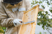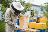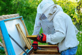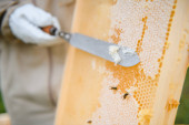 Zdjęcie "Pszczelarz zbiera miód. Koncepcja pszczelarstwa" może być wykorzystywane do celów osobistych i komercyjnych zgodnie z warunkami zakupionej licencji Royalty-free. Obraz jest dostępny do pobrania w jakości wysokiej rozdzielczości do 5760x3840.