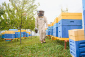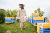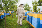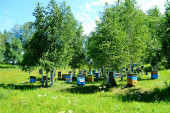 Pokrzywka w pasiece z pszczołami lecącymi na deski. Pszczelarstwo.