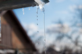 Icicles drip from the roof. The arrival of spring.