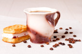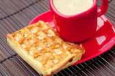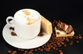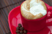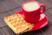 filiżankę cappuccino wafli i kawa na mat bambusowych