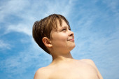 portret ładny chłopak na plaży