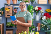 Zdjęcie "Latynoski młody człowiek pracujący w kwiaciarni pokazuje ekran smartfona nieświadomy i zdezorientowany wyraz twarzy. koncepcja wątpliwości. " może być wykorzystywane do celów osobistych i komercyjnych zgodnie z warunkami zakupionej licencji Royalty-free. Obraz jest dostępny do pobrania w jakości wysokiej rozdzielczości do 5760x3840.